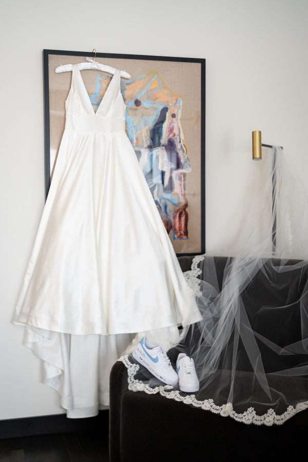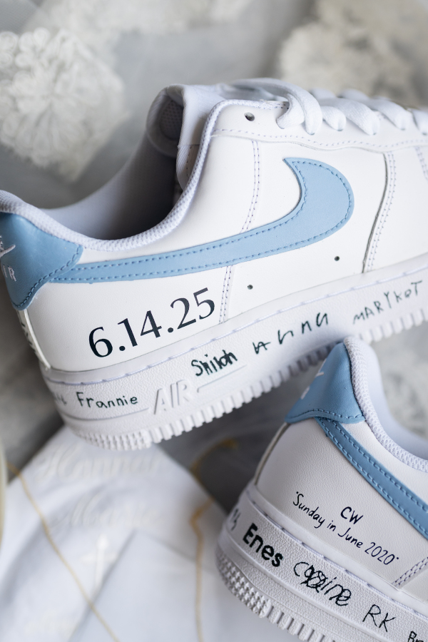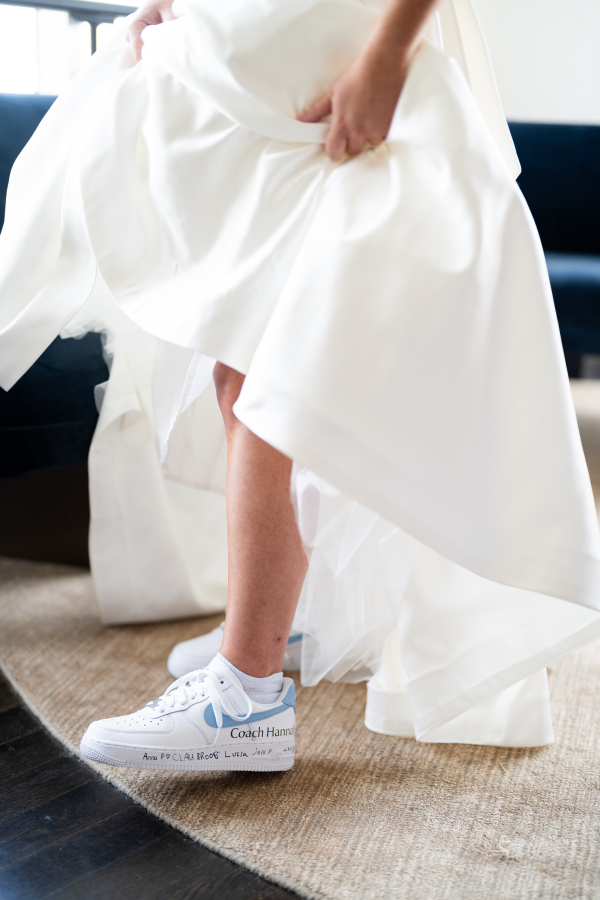One of the most heartfelt details belonged to the bride, a devoted teacher, who wore blue and white Nike sneakers, signed by all of her students.