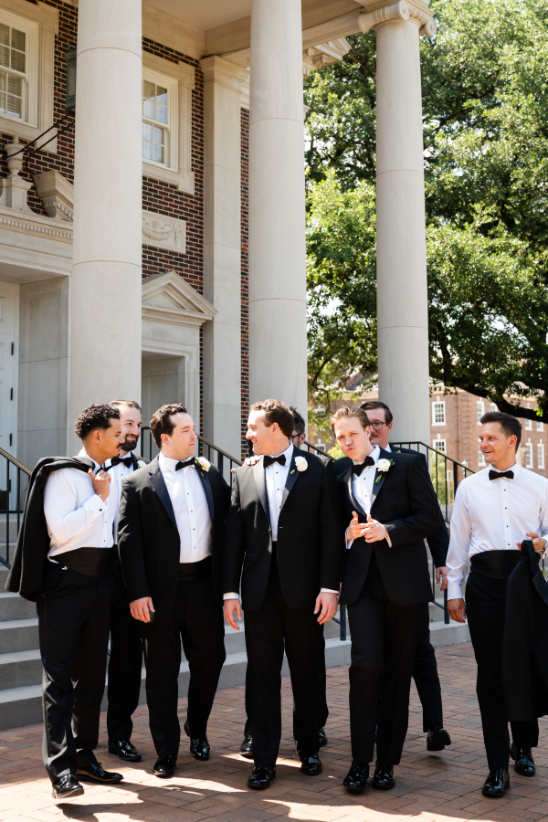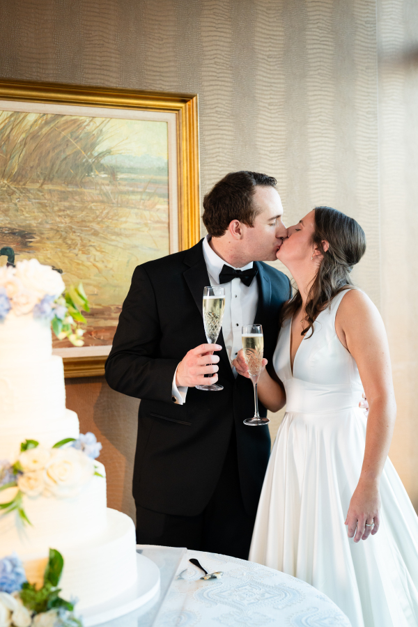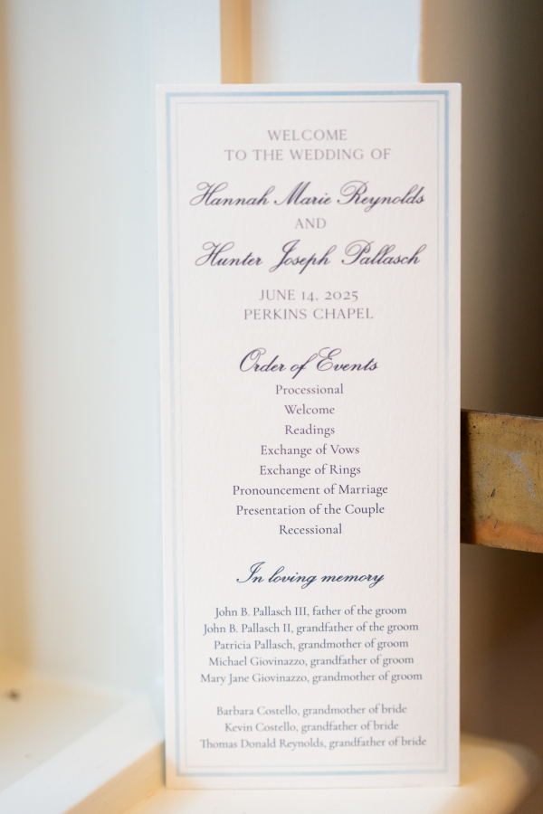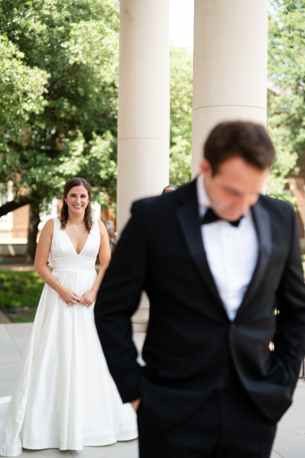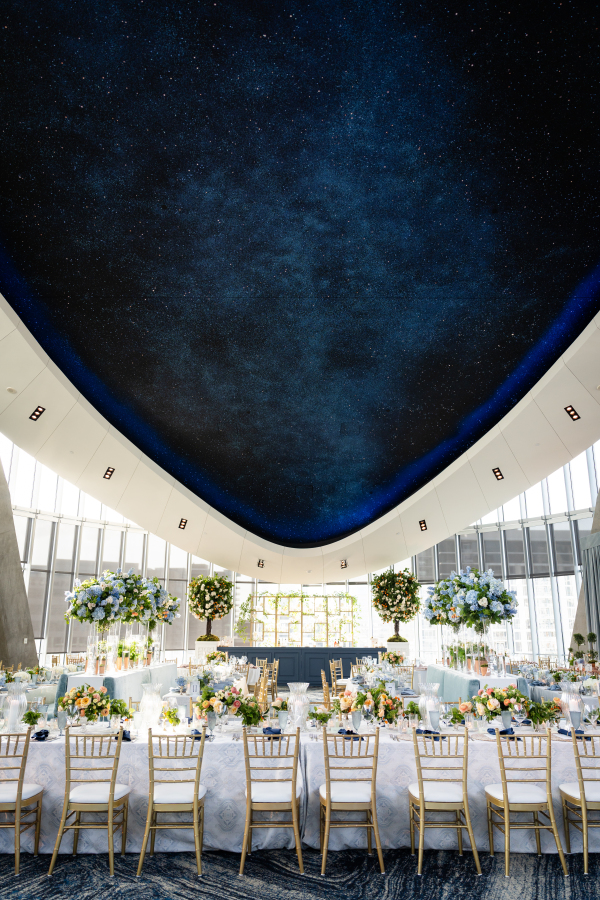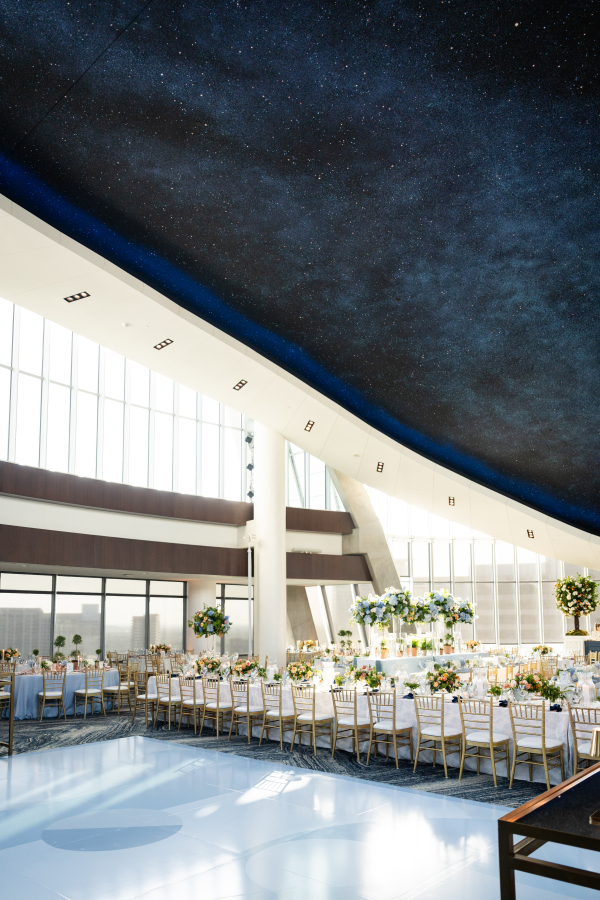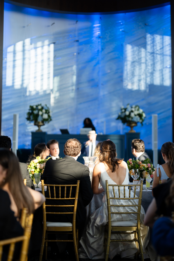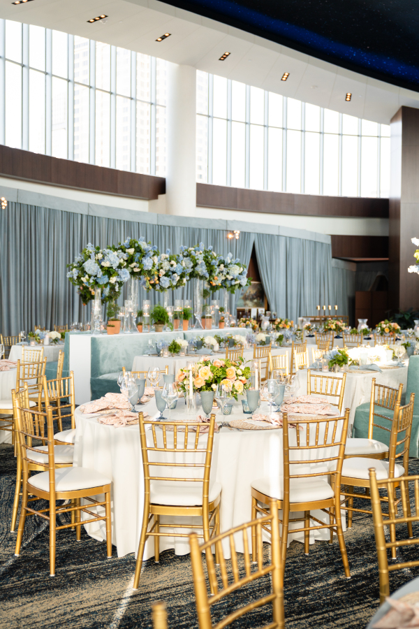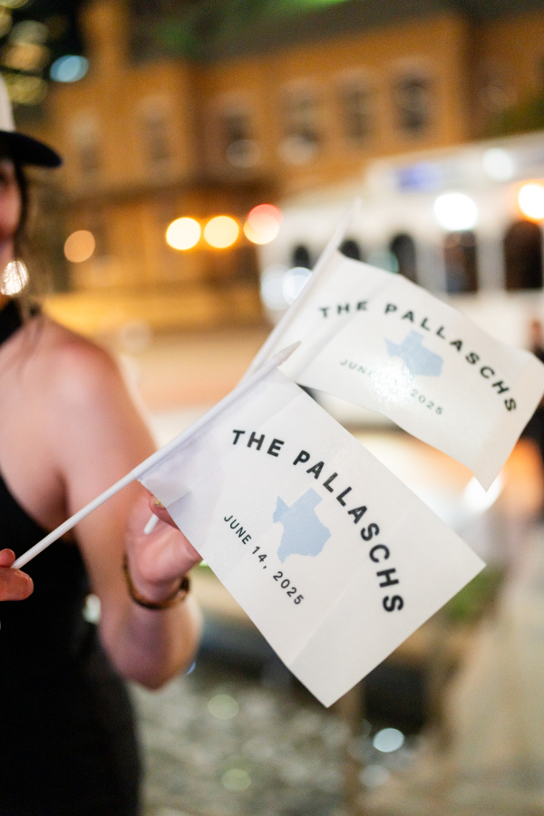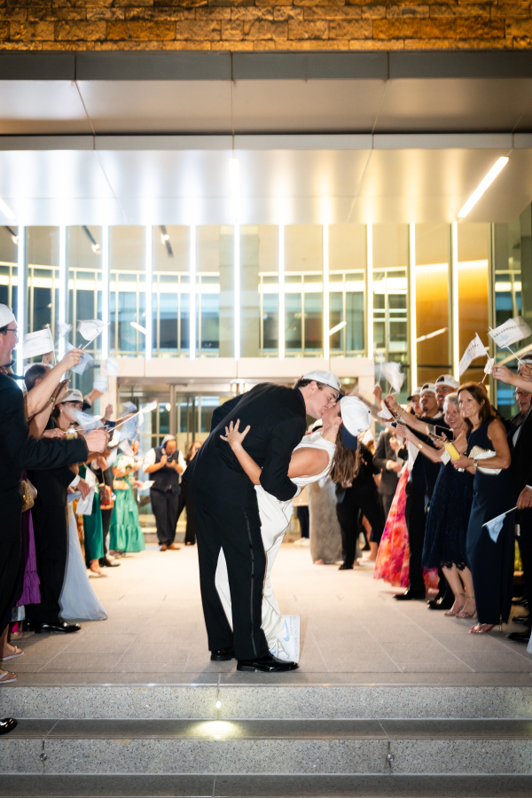 The Dallas Petroleum Club was a clear choice — earning a stamp of approval from the mother of the bride, an architect, who admired the venue’s unique layout, architectural character, and refined details. But for the groom, the space held an even deeper meaning, in the form of the club’s featured duck paintings, which felt like a sign from his late father, who was a duck hunter.
