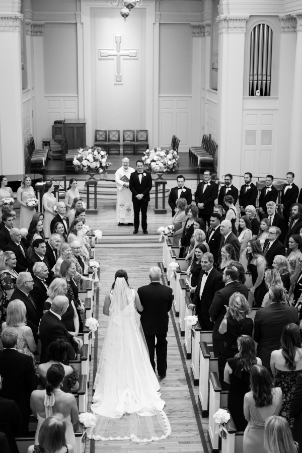 The couple exchanged vows at the timeless Perkins Chapel before hosting an elevated reception at the Dallas Petroleum Club, a venue chosen for far more than just its skyline views.