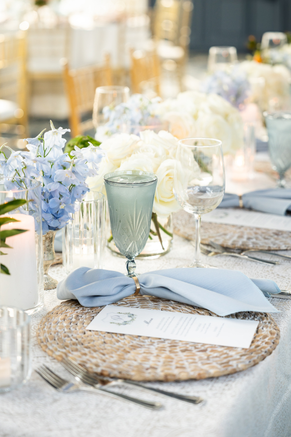 From the start, Hannah & Hunter envisioned a Mediterranean-inspired color palette filled with sun-washed tones, soft blues, warm neutrals, and hints of citrus. The palette felt fresh and romantic for a summer Texas wedding.